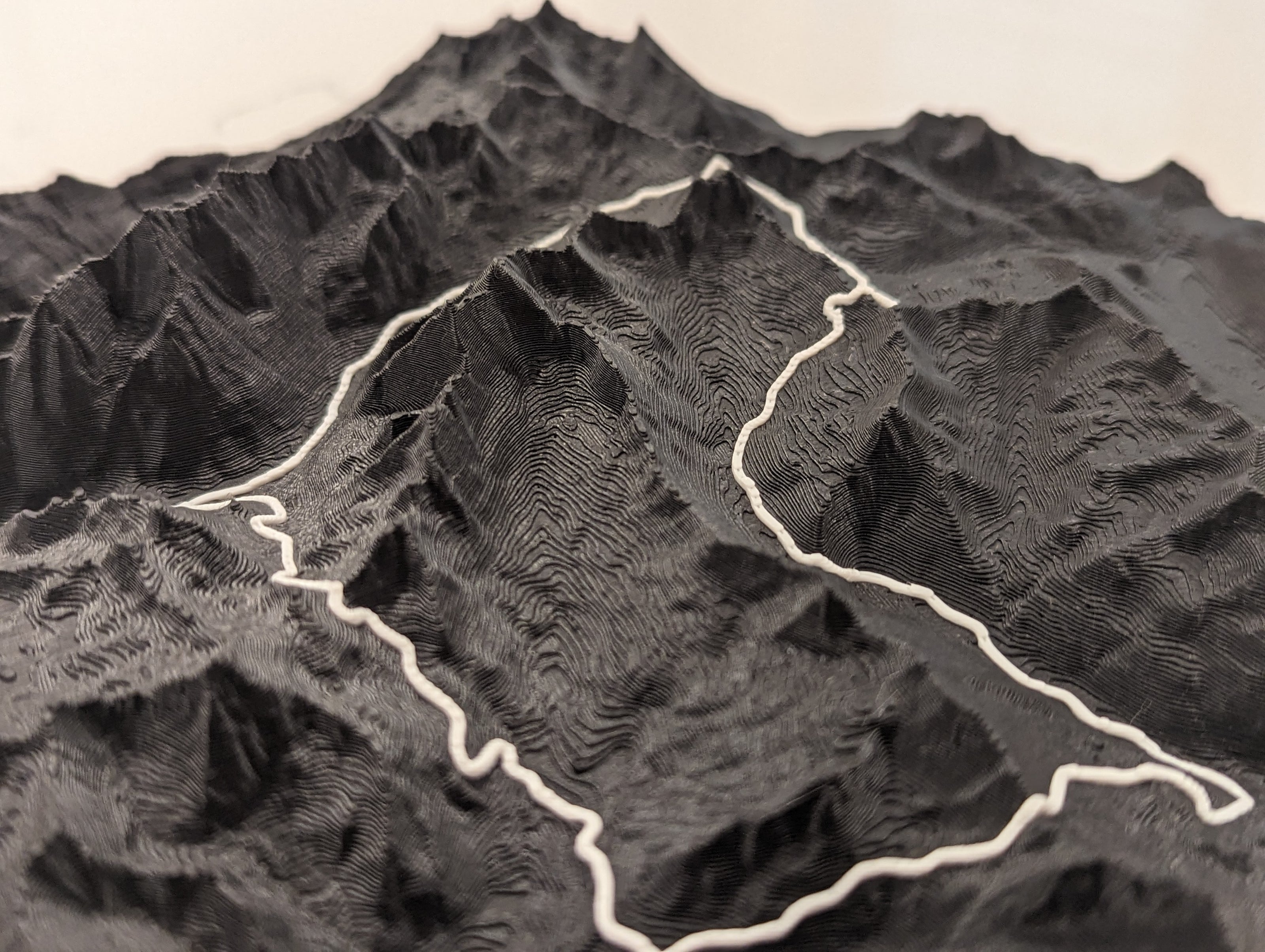 Back in 2021, I wanted a way to commemorate my favorite backpacking trip I had been on at the time - the Laugavegur trail in Iceland. As an engineer in the 3D printing industry, I decided to 3D print a topographic map of the area large enough to mount on a wall in my home - but this didn't tell the full story. Instead, I went through the process of learning how to accurately add the 3D representation of the trail to a topographic map, in addition to adding markers for the huts and campsites along the way.