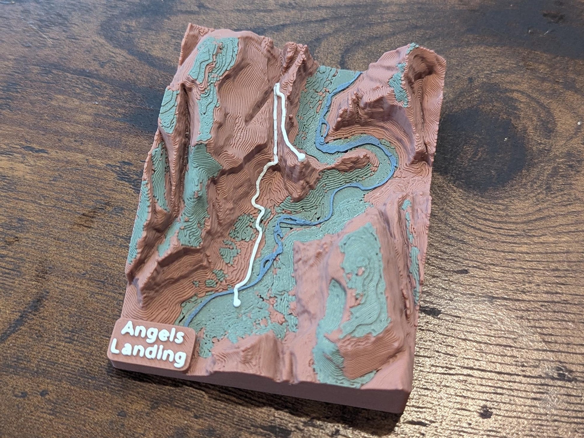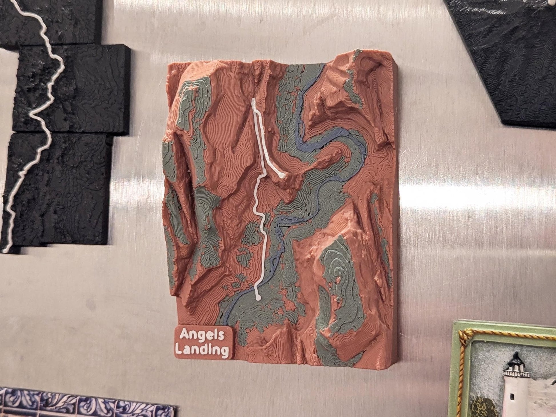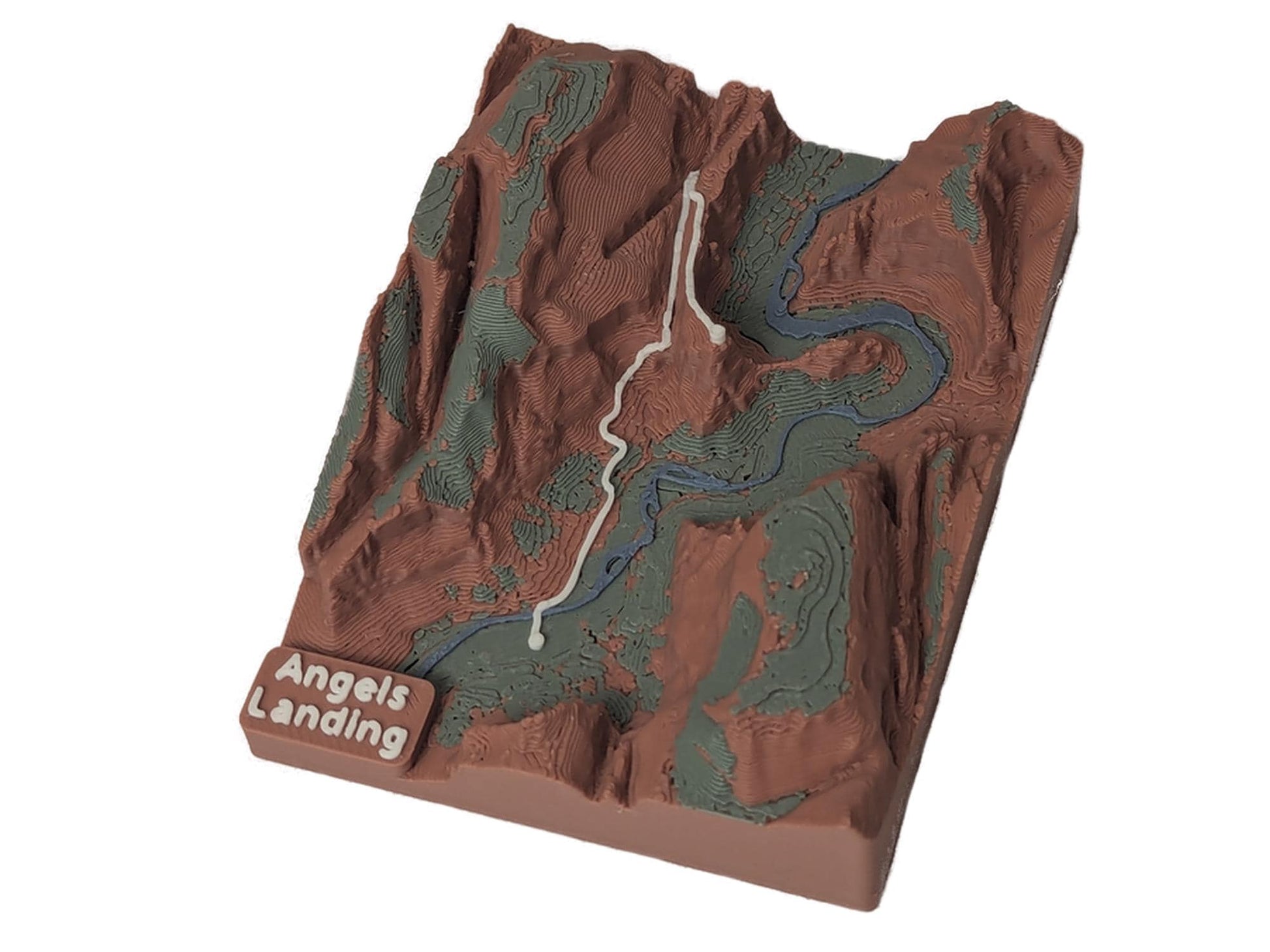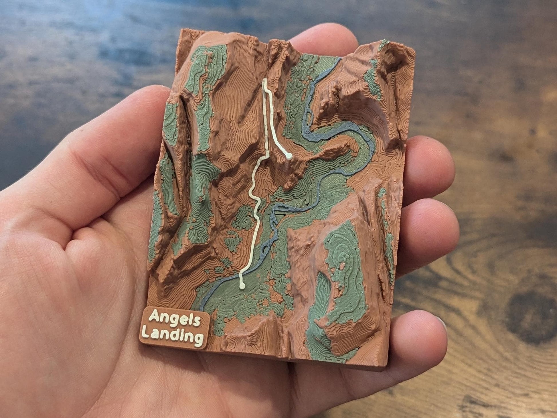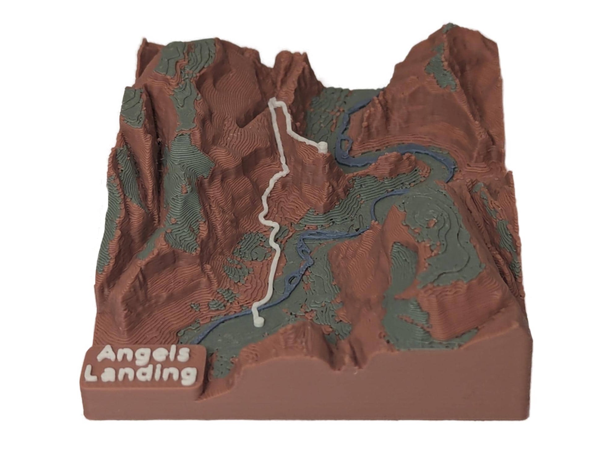 Peer into Zion Canyon from above with this topographic map magnet of the 4.4 mile Angels Landing trail in Zion National Park in Utah. The magnet occupies a volume of 3.5 x 2.7 x 0.8 in (9.0 x 6.8 x 2.0 cm).