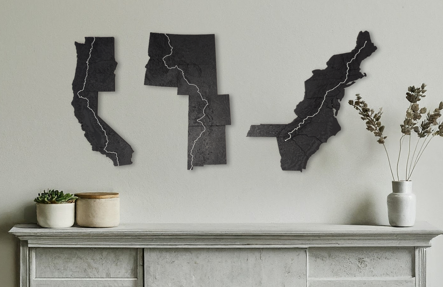 Bring the AT, CDT, and PCT into your home with these intricately detailed 3D maps. Tributes to three of the most iconic long-distance trails in the world. Meticulously crafted with precision, our maps showcase every contour and state boundary, providing a stunning recreation of these legendary routes.