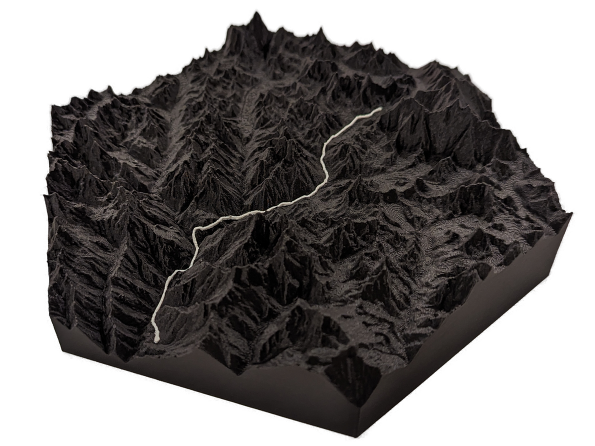 Capture the story of a hike, backpacking trip, mountain biking trail, or any other journey with a 3D topographic map. Turn any journey into a beautiful piece of minimalist wall art.