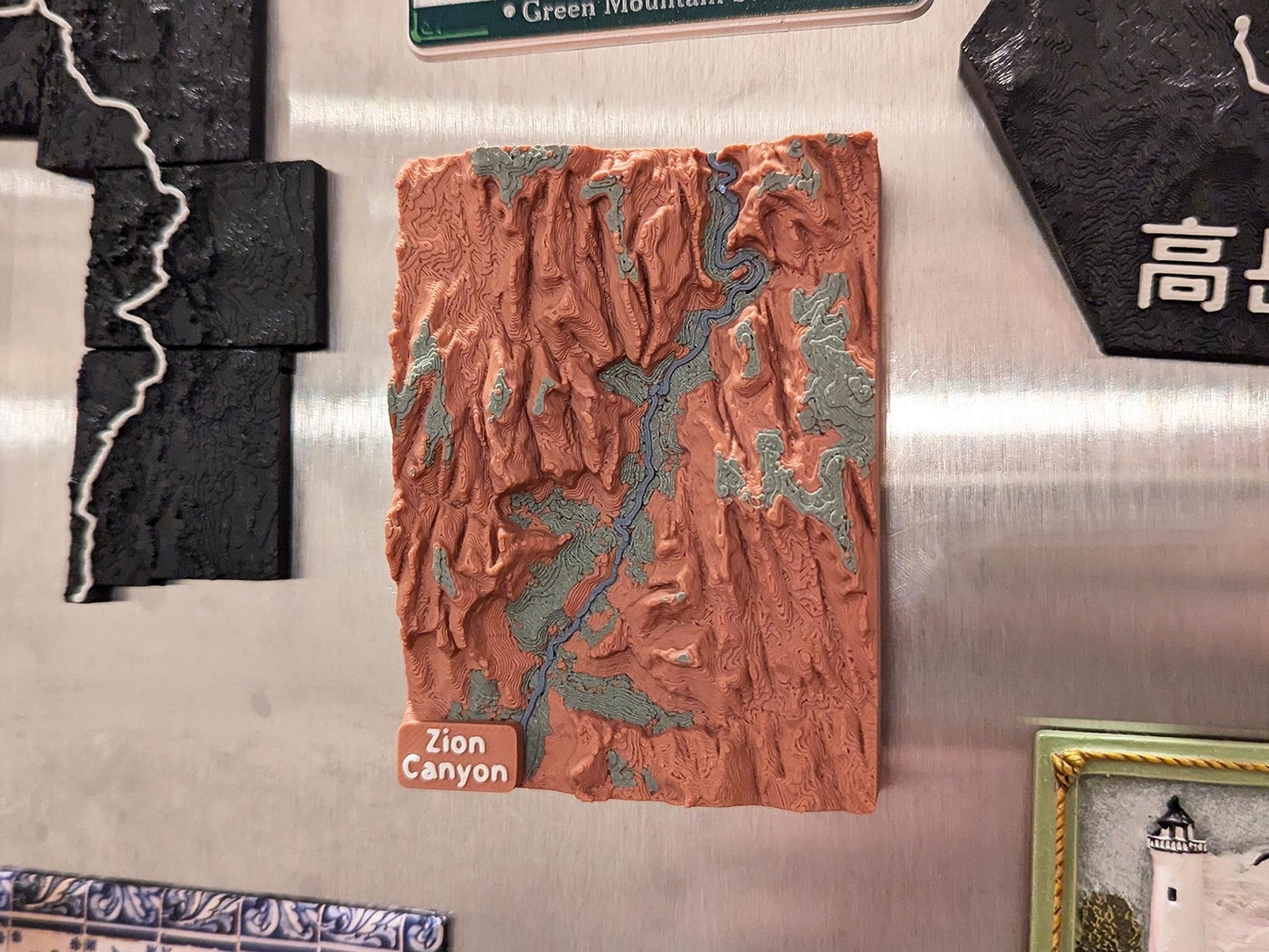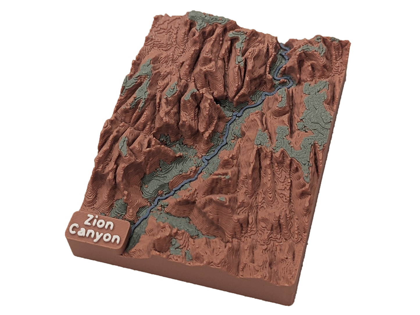 Zion Canyon is the highlight of Utah’s Zion National Park, known for its steep red cliffs and unique geology. This magnet captures the topography of the canyon, offering a miniature version of the park’s famous landscape. The magnet occupies a volume of 3.5 x 2.7 x 0.8 in (9.0 x 6.8 x 2.0 cm).